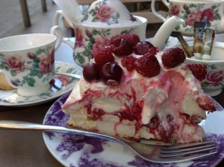 We decided on two equally appealing cakes thinking we would share them. Well, we could have shared them for afternoon tea, dinner, and breakfast the next day! The picture on the left is not an exaggeration of the size of the serving. Our cakes tasted even better than they looked. True! We felt like we had stepped back to a time when people enjoyed simple things like tea and cake well-prepared and beautifully presented.